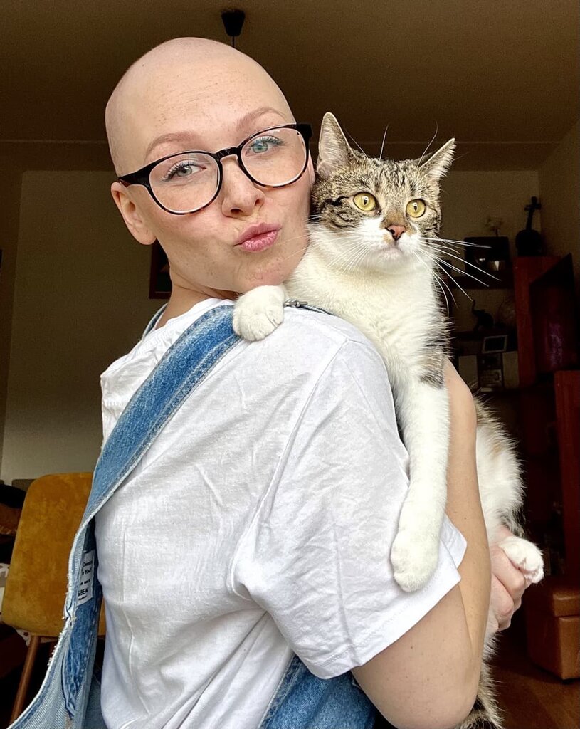 "Vlasy mi začaly padat asi čtrnáct dní po první chemoterapii. Jelikož jsem si to už jednou prožila s maminkou, hned jsem věděla, co dělat. A tak mi to mamka vzala mašinkou dřív, než budu mít plný polštář vlasů. Přišla jsem si jak nějaký mimozemšťan. Nic moc, ale člověk si zvykne na všechno.